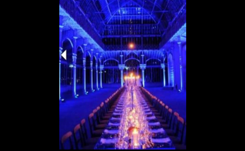 scenografia con particolare attenzione per l'illuminazione dell'evento in una location liberty molto affascinante e unca