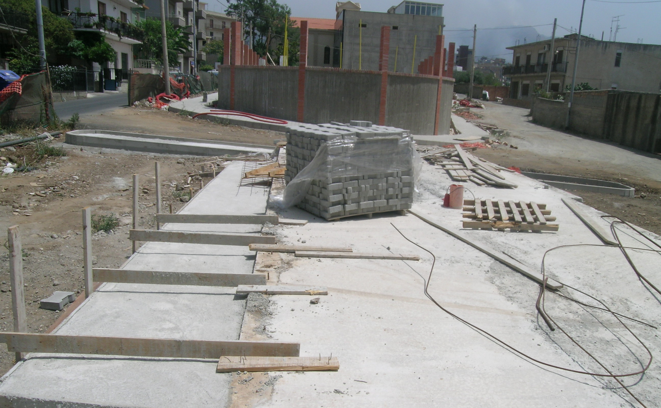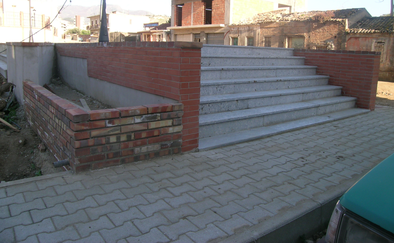 1 - L'area ludico-ricreativa è costituita da una cavea di forma semicircolare, per eventi e manifestazioni all'aperto, ha struttura portante in cls armato, i gradoni anch'essi in cls sono stati ancorati a setti armati posti ad un interasse di 5,00 ml, con sedute di larghezza pari a cm. 60 ed alzate di cm. 45 il tutto rivestito in lastre di pietra locale. La pavimentazione dell’intera area invece è stata realizzata in monostrato vulcanico posato in opera con tessiture diversificate su apposito disegno geometrico per vivacizzarne l'andamento.L’area ricreativa destinata a giochi per bambini, adiacente alla "cavea", è stata perimetrata mediante con cordolatura prefabbricata in cls vibrocompresso al fine di contenere il "fondo" costituito da ghiaino lavato, risulta attrezzata con giostrine, giochi a molla, scivolo a struttura metallica, panchine, cestoni gettacarte, portabiciclette etc. e dotata del relativo impianto di illuminazione notturna.