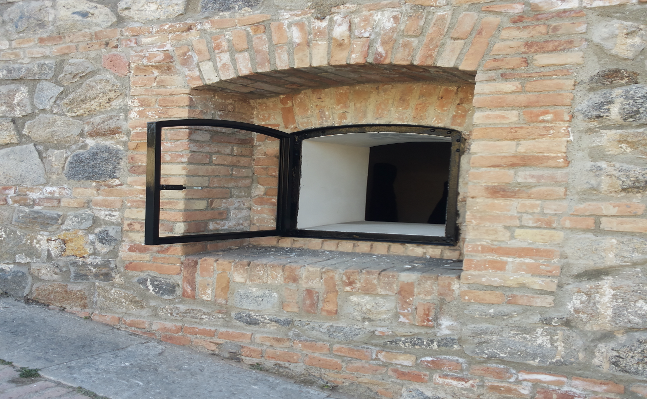 Fedele ricostruzione degli elementi in mattoni pieni f.a.v. (di recupero) caratterizzanti la fortificazione umbertina con recupero degli esistenti telai fissi in ferro degli infissi interni