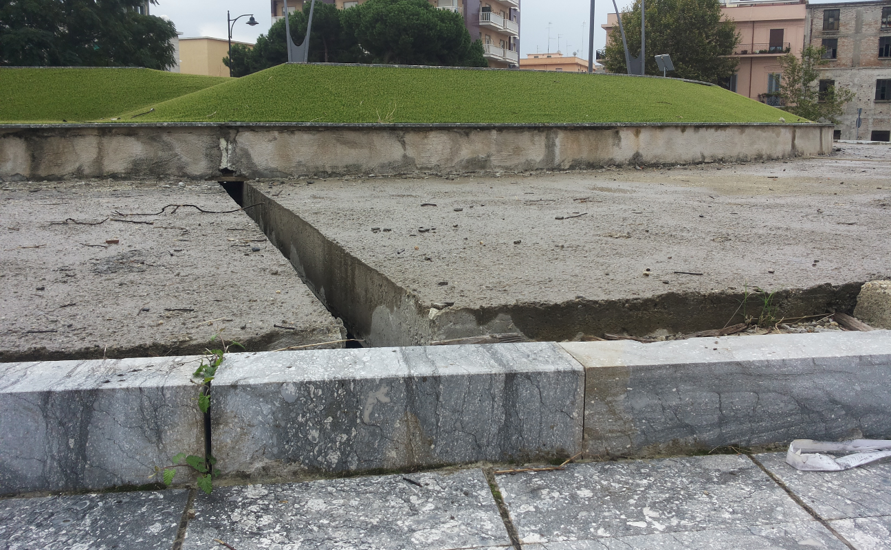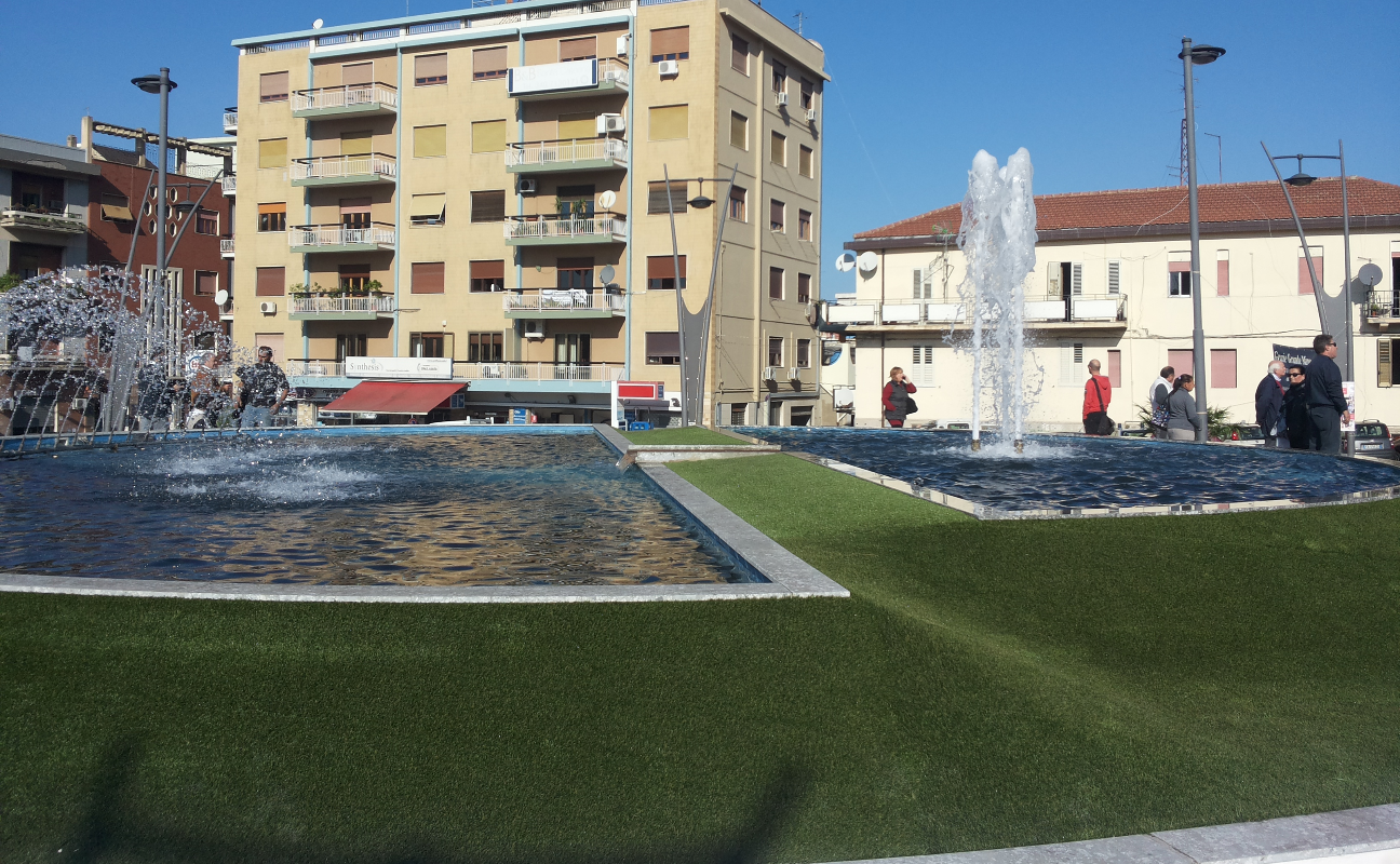 L’obiettivo di riqualificare esteticamente e funzionalmente questo spazio si è concretizzato con la trasformazione del terminal-bus in zona di sosta per i pedoni con una scenografia che ha come elemento polarizzante la realizzazione di una fontana artistica circondata da spazi destinati a verde.