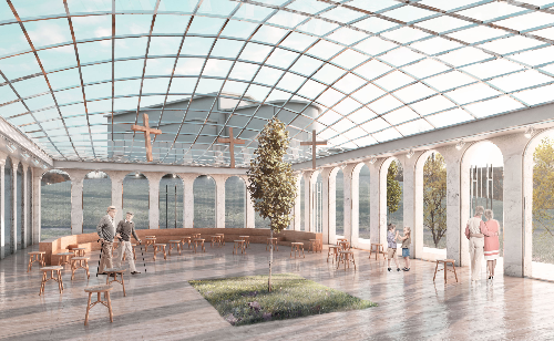 La scelta simbolica di non creare muri, quasi senza fare distinzione tra il dentro e il fuori, ma separare interni ed esterni con superfici vetrate, grazie alle strutture ad arco, evidenziando così monumentalità e leggerezza di materia.