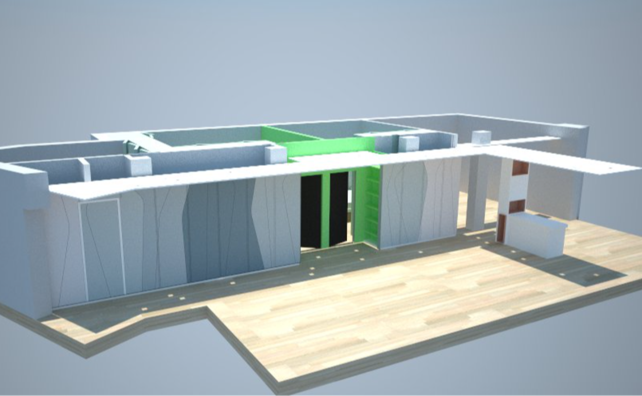 Un ingresso da una parte e il terrazzo dall'altra....La parete diventa tutto il possibile, ma in Legno