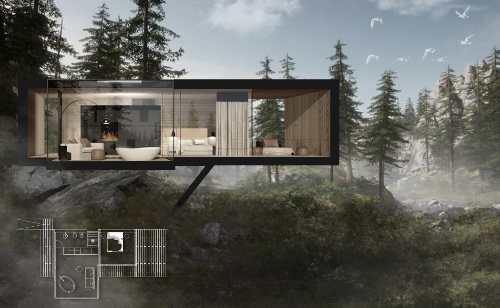 Proposta di progetto per un hotel diffuso in una suggestiva pineta abruzzese.